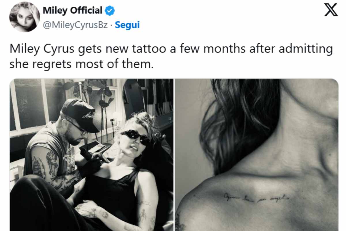 Miley Cyrus ha un nuovo tatuaggio, ma questa volta ha scelto l’italiano. Una frase breve, intensa, che ha subito acceso la curiosità dei fan.